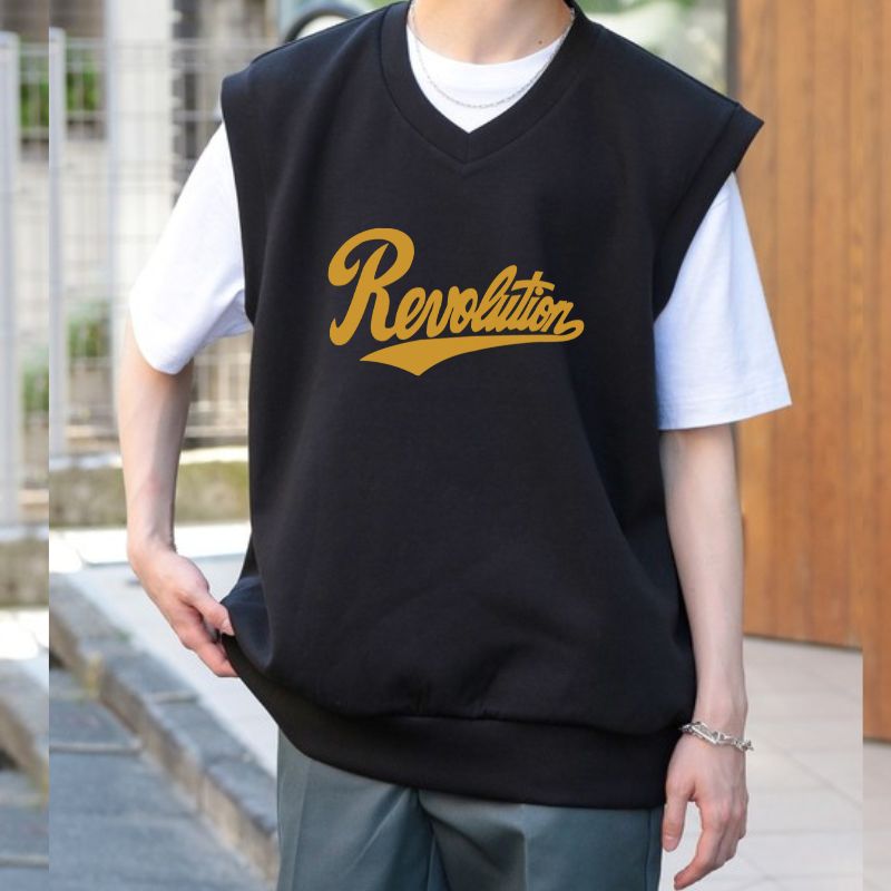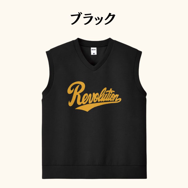 フロントにイエローの「Revolution」ロゴを配置したデザインが特徴の、スタイリッシュで機能的なニットベストです。