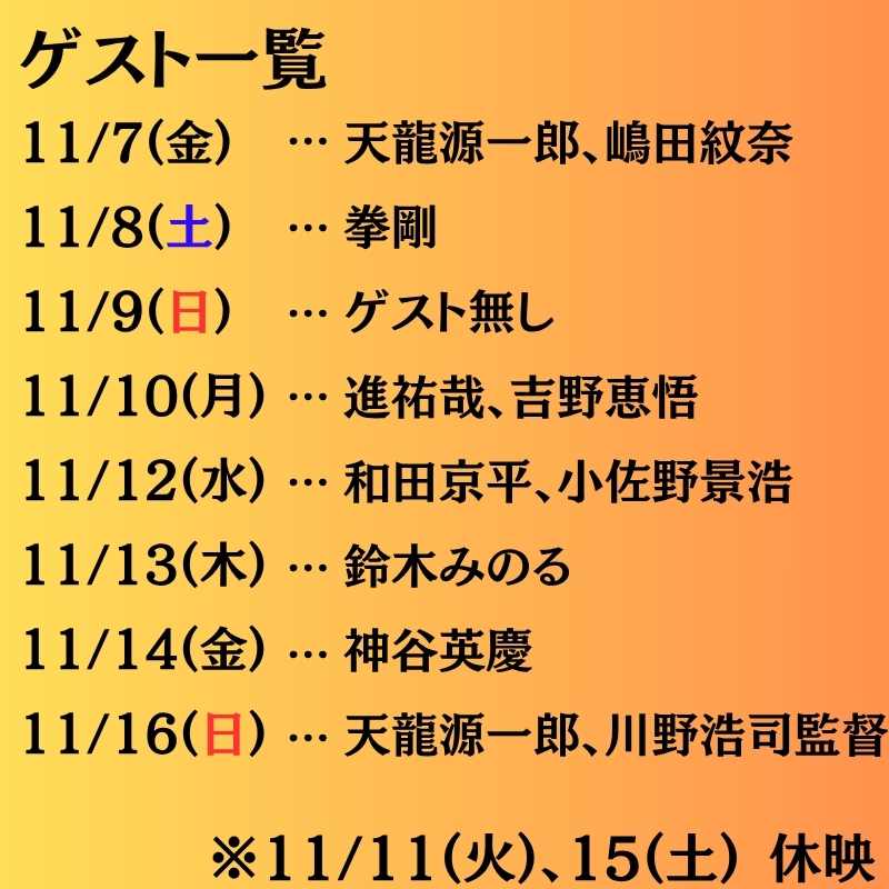 上映休止:11月15日(土)※天龍プロジェクトイベント開催のため