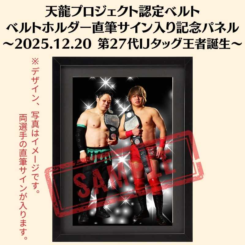 《限定》天龍プロジェクト認定ベルト ベルトホルダー直筆サイン入り記念パネル 児玉裕輔&仁木琢郎(2025.12.20第27代・IJタッグ王者戴冠)