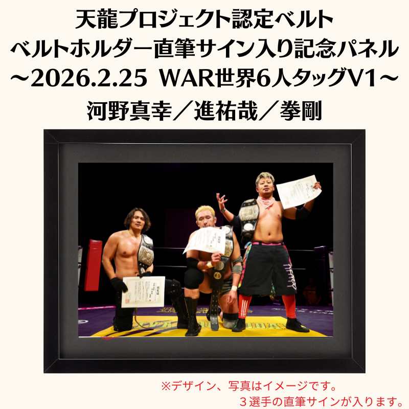 《限定》天龍プロジェクト認定ベルト タイトルホルダー直筆サイン入り記念パネル 河野真幸・進祐哉・拳剛選手(2026.2.25第29代・WAR世界6人タッグ王者V1)